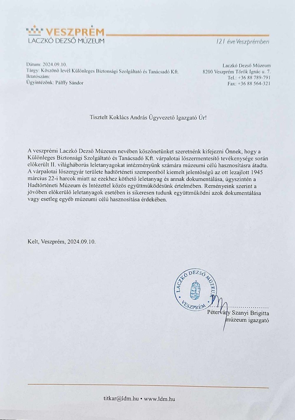 Köszönő levelek